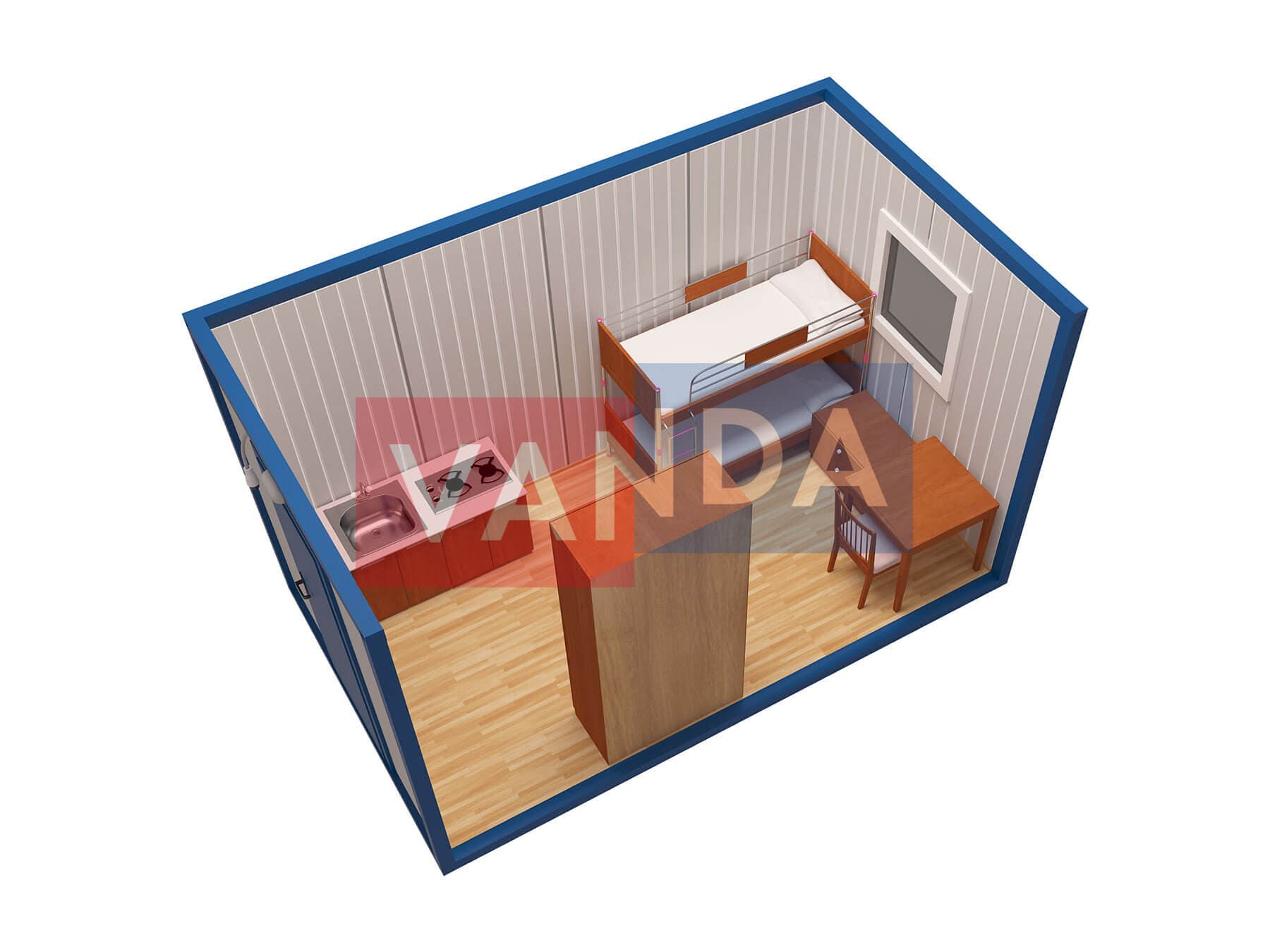 Металлическая бытовка без тамбура 5,85 x 2,4 - Вагонка ПВХ